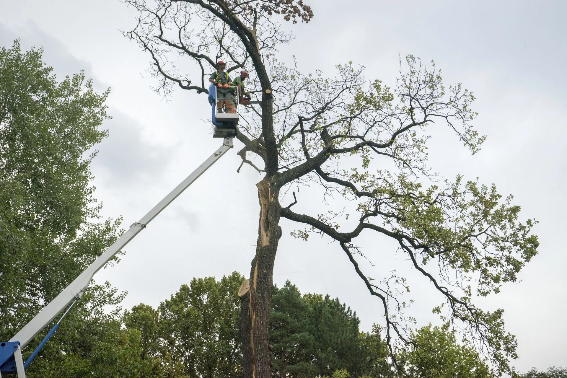 Wir führen Verkehrssicherungsmaßnahmen durch, fällen Problembäume und kümmern uns um die Sanierung geschädigter Bäume.